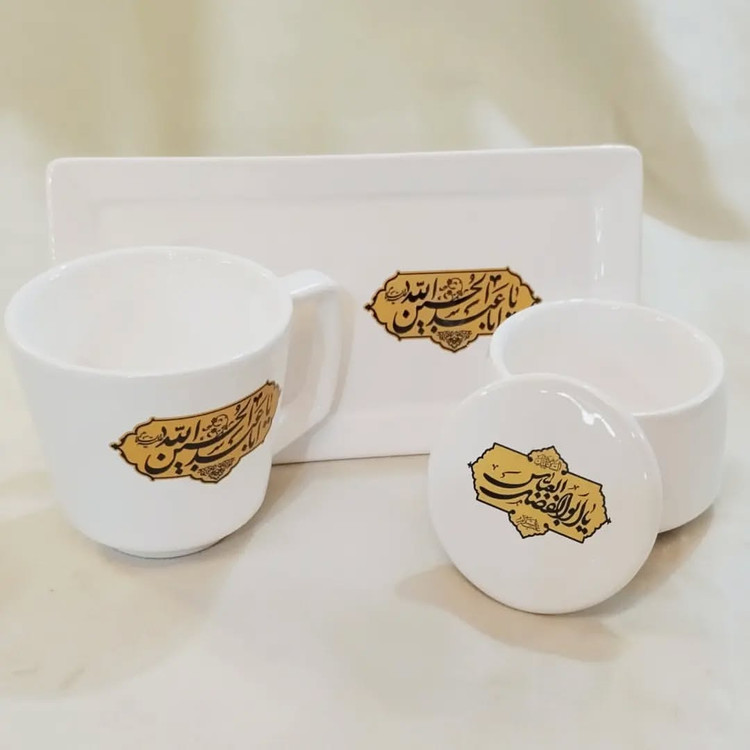 ست چایخوری مذهبی به درخواست شما تولید شد مناسب برای هدیه و مراسمات مذهبی پخته شده در دمای ۱۱۰۰ درجه لعاب بدون سرب دارای تضمین ترک تاخیری و تضمین کیفیت